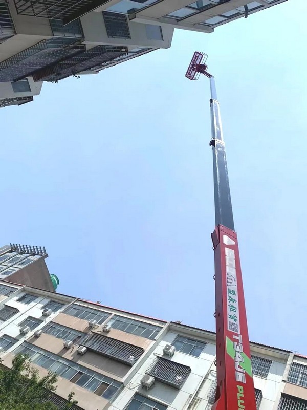 综合设备的实用性、耐用性、安全性、现场服务及时性等因素,客户选择了南宫NG·28重机T34JE高空作业平台,参与小区翻新改造项目施工。